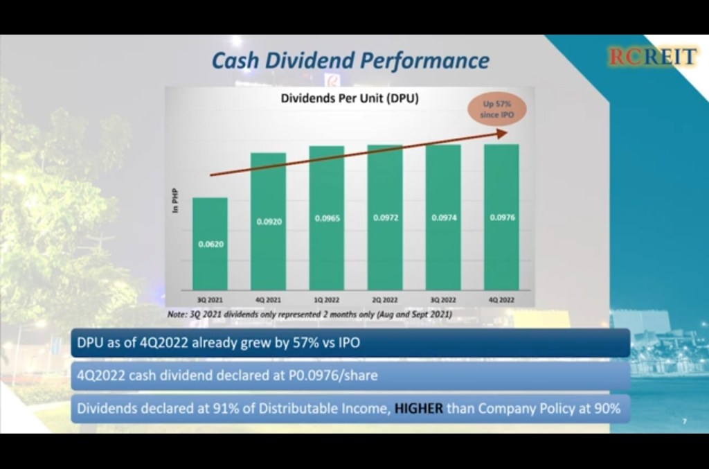 Don’t be too impressed with the 57% increase though since the initial dividend only represented 2 months. Its really more of a 6-7% increase over 5 quarters – still very respectable given the impact of flexible work on office rental properties. The fact that RCR maintained an occupancy rate of 98% is a testament to the quality if their assets, tenants and managenent.