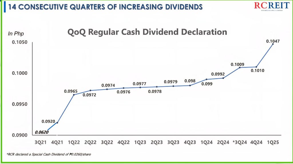 I always appreciate companies who reach out to their minority shareholders so kudos to RCR. The first takeaway is the recent announcement that sponsor RLC will be infusing 9 Robinsons Malls this year, subject to shareholder and regulatory approval. Post infusion, RCR’s EBITDA will be approximately 50-50 offices and malls. I think this is great considering the challenges faced by the office sector particularly AI’s impact on the BPO industry. Malls also derive variable rent in the form of a percentage of tenants’ sales so this provides an upside to future dividends, particularly in Q4, when malls are packed with Christmas shoppers.